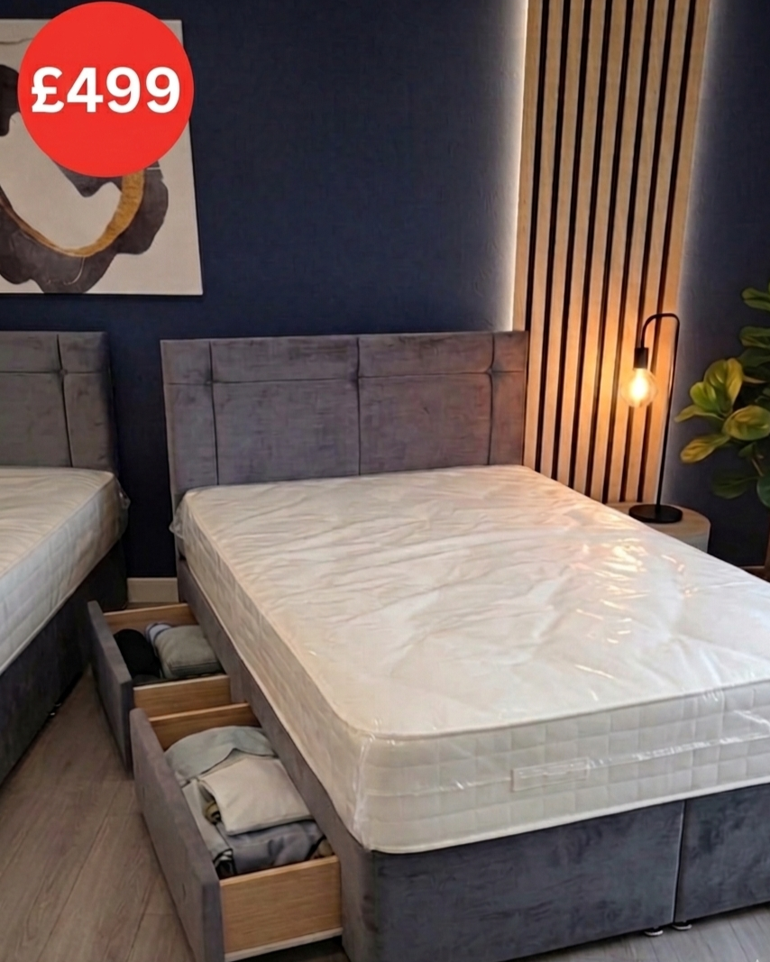 🛏️ Solid Double Divan Base Includes 2 built-in storage drawers